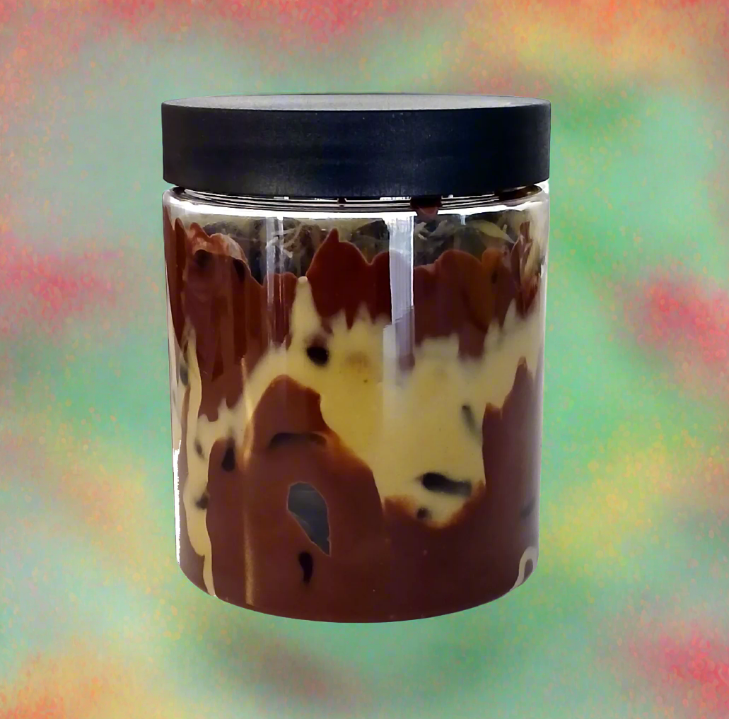 Each jar is filled with delicious chocolate, Kadaifi, and Pistachio Cream. This unique blend is combined with our popular gummies in one treat. The chocolate coating, pistachio cream, and Kataifi create a delightful, creamy experience.