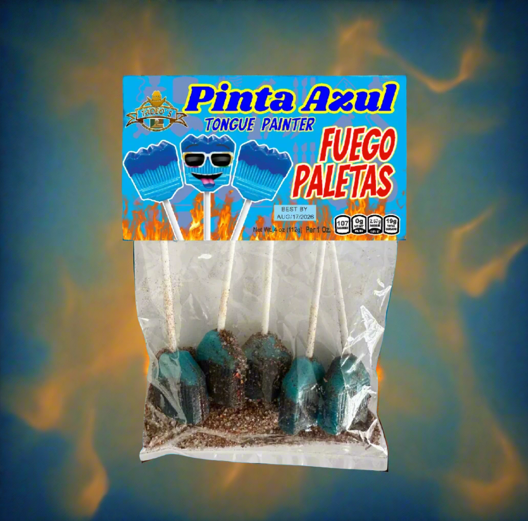 The Pinta Azul lollipops bring color and fun to children and adults alike. It comes with 5 lolipops to share them with everyone for a sweet moment of fun!
